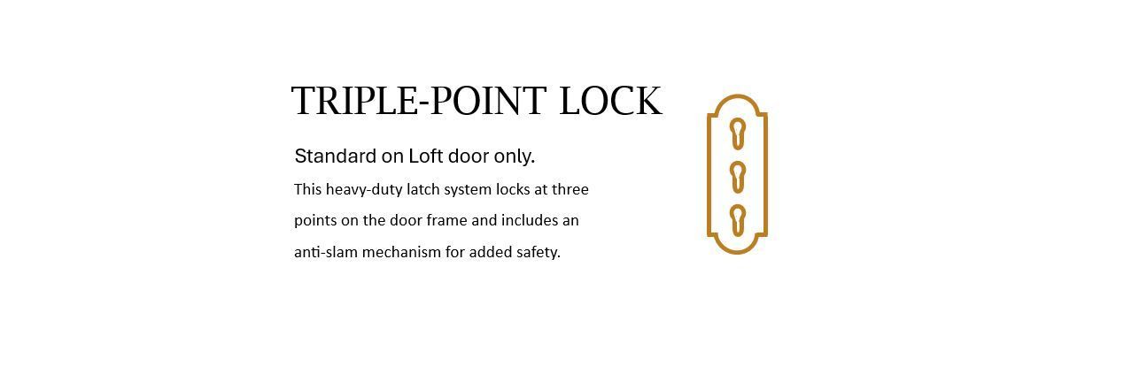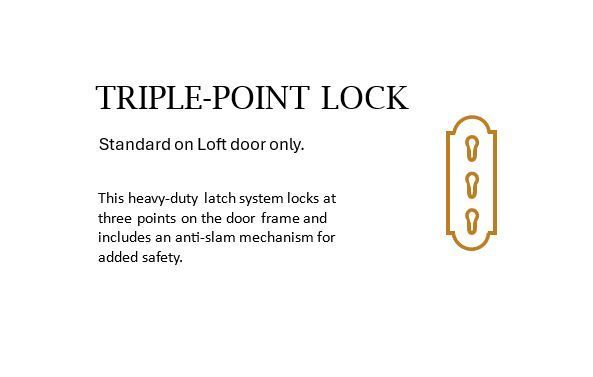 Triple-Point Lock: This heavy-duty latch system locks at three points on the door frame and includes an anti-slam mechanism for added safety.
