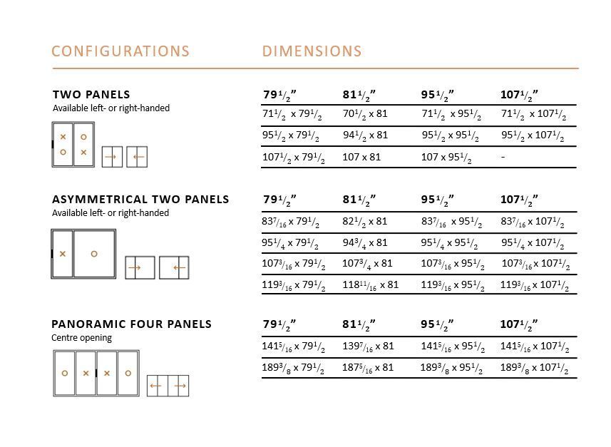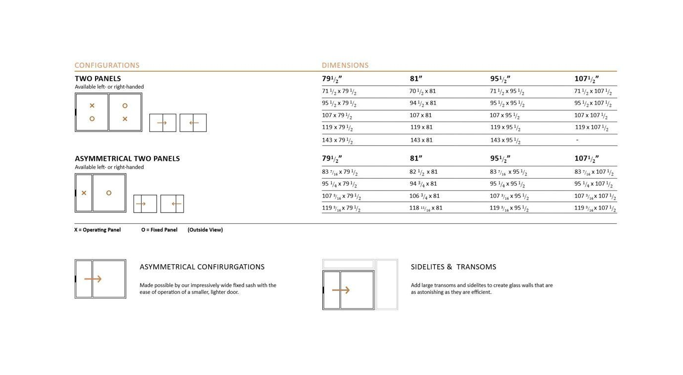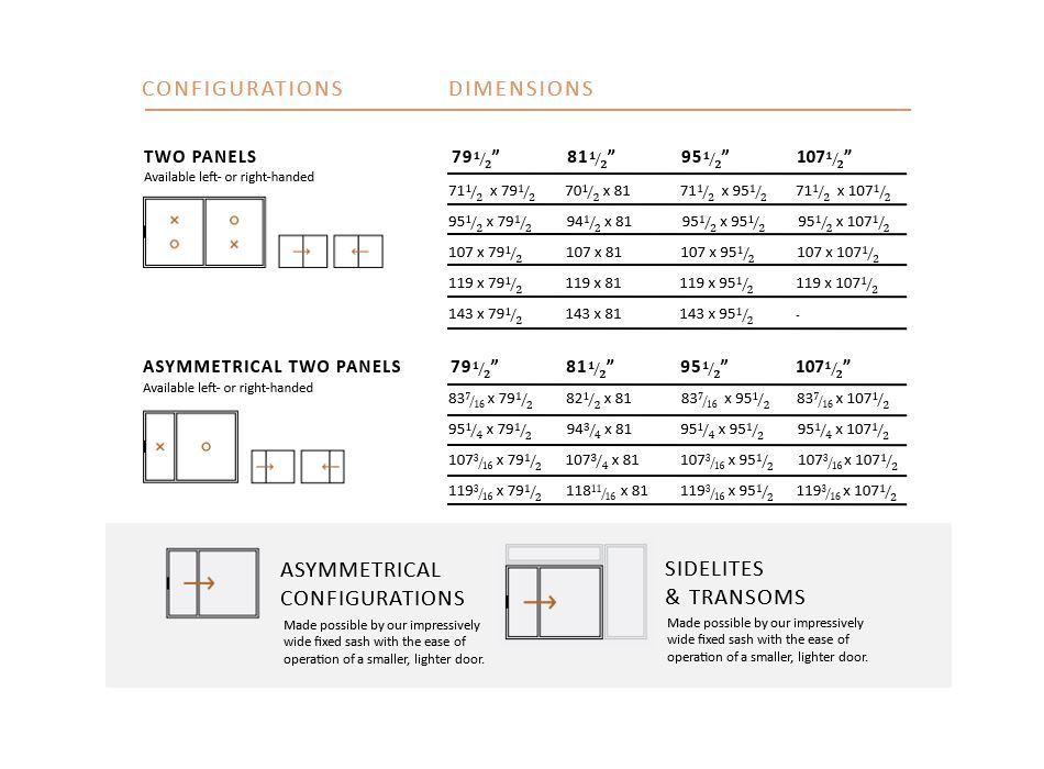 You can choose from our 5-foot, 6-foot, 8-foot, 12-foot, or 14-foot standard patio doors. We also design custom patio doors, so whether you are looking for a modest adjustment or have a fully customized plan in mind, we can create different combinations of sizes, colors, and finishes.