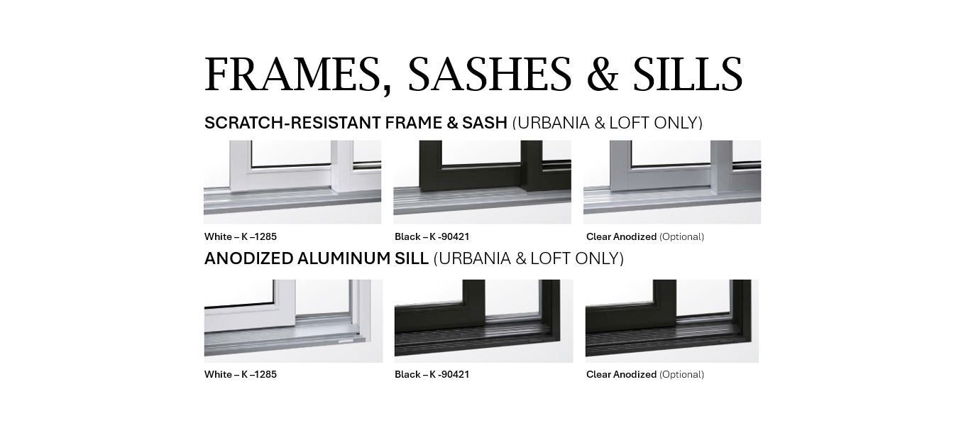 This package includes black anodized panel and screen sliding rails, black bulb seal, dark weatherstripping, and black sealed unit spacer, with an optional black anodized sill.